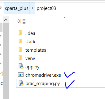 - 설치된 파일 위치 이동 : scraping.py 와 폴더 위치가 같아야 한다. (필수)
