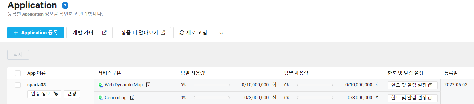 -> 이용 신청하기 -> Application 등록
