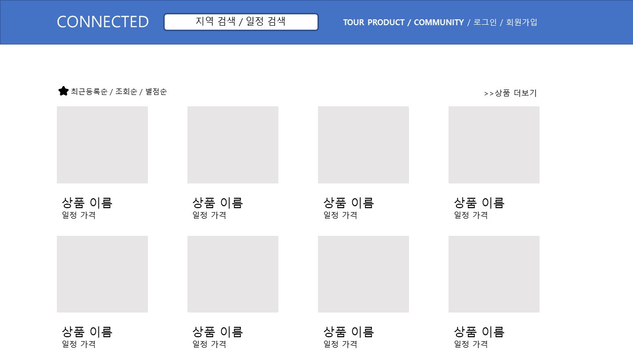 - 가이드 상품 중 추천 상품(조회수 순 10개, 최신 순 10개) 또는 지역에 따른 상품 정렬 >>더보기 누르면 상품 페이지 이동