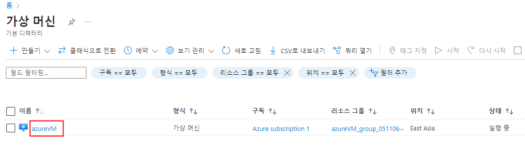 등록한 가상머신이 보입니다. 이름을 클릭합니다.
