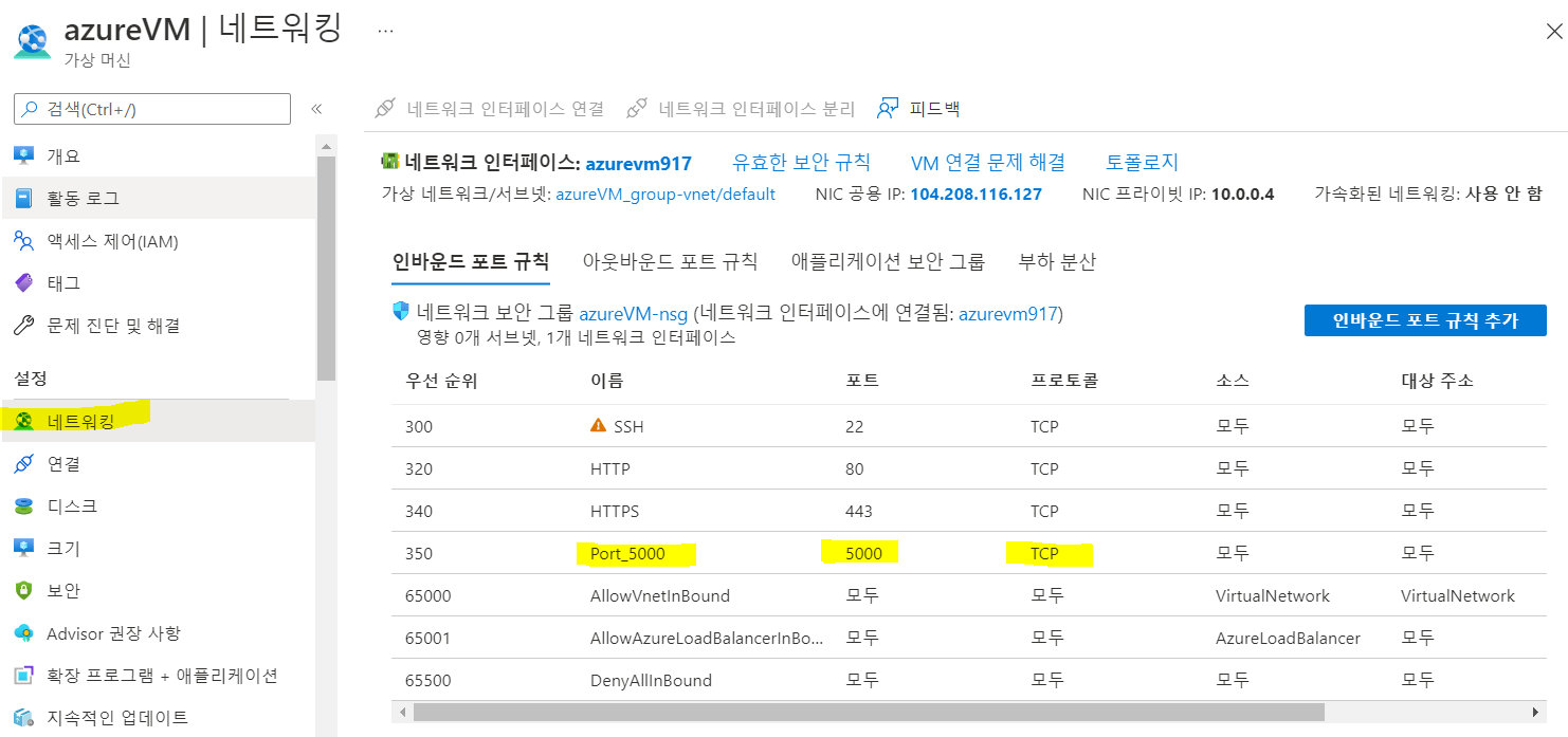 MS클라우드 애저(Azure) 가상머신(VM) 배포 방법(feat:flask)
