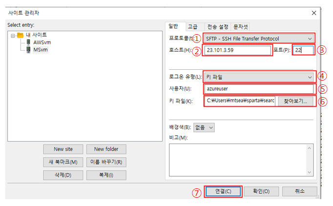 ⑥ MS클라우드 가상머신(VM) 생성시에