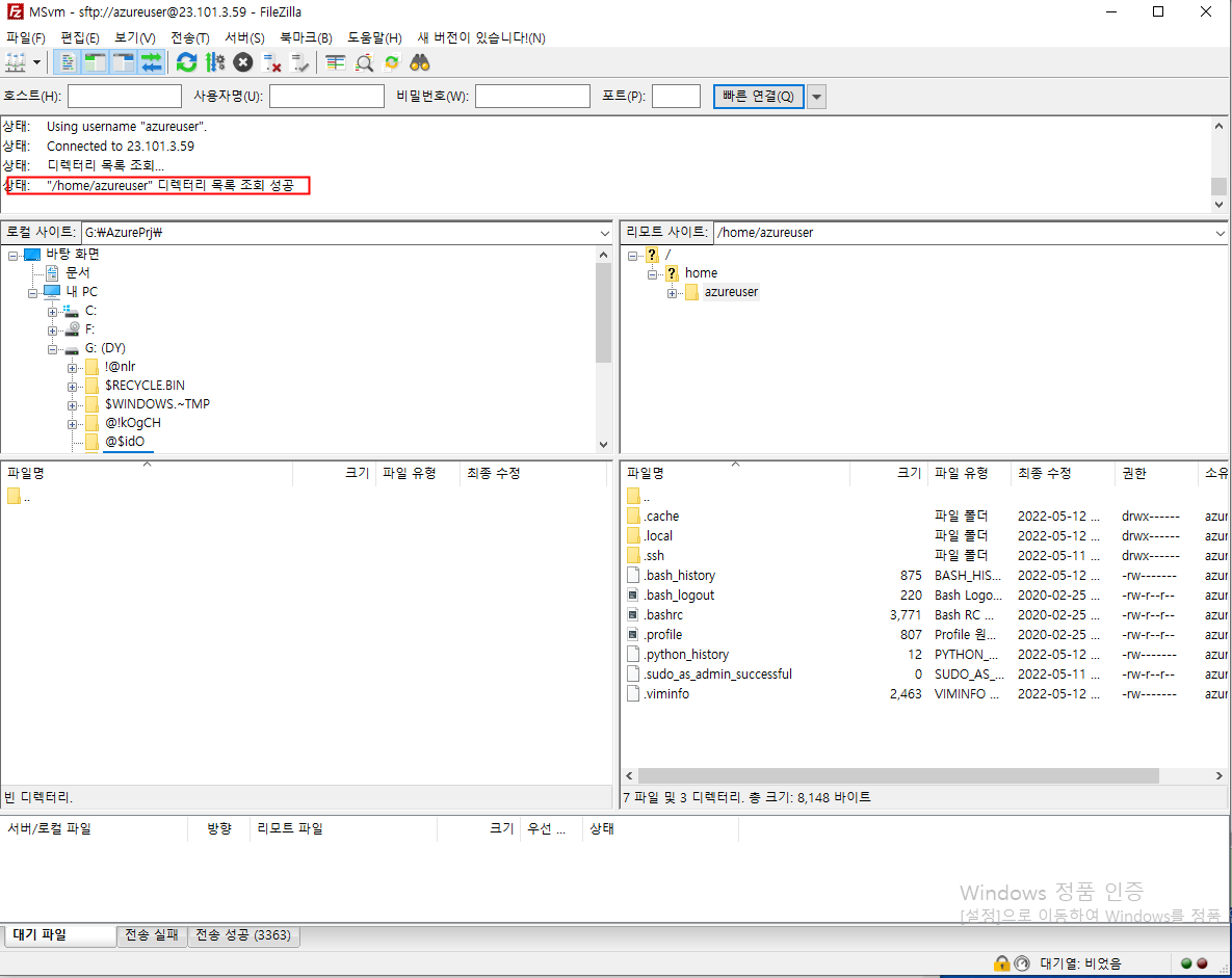 이제는 MS클라우드 VM에 설치가 되었습니다.