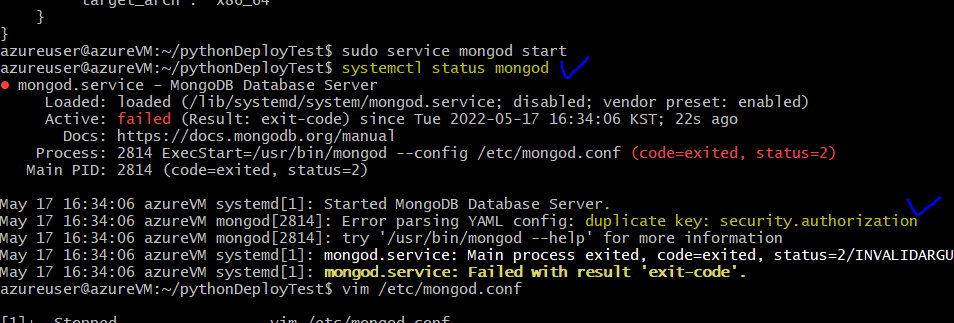 2. 서버에 설정 오류로 몽고디비가 실행이 안된 경우