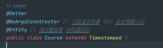 - Course 클래스 Getter, NoArgsConstructor 적용