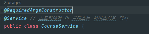 - CourseService 클래스 RequiredArgsConstructor 적용