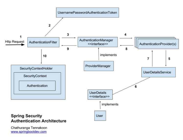 - 서로 다른 HTTP 요청 경로마다 서로 다른 보안 규칙을 적용한다. 예를 들어. 홈페이지와 사용자 등록 페이지는 인증이 필요하지 않다.