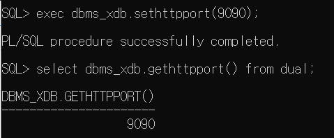 4. 포ㅇ트 변경 : EXEC DBMS_XDB.SETHTTPPORT(원하는 포트번호);