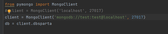 client = MongoClient('mongodb://test:test@localhost', 27017)