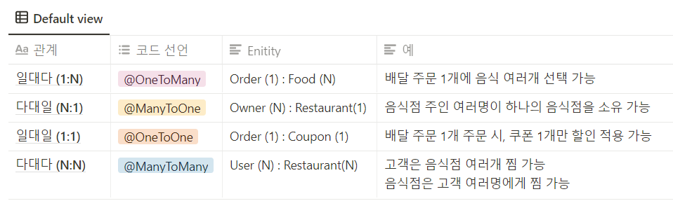 - 중요) 항상 Enitity 본인 중심으로 관계를 생각!