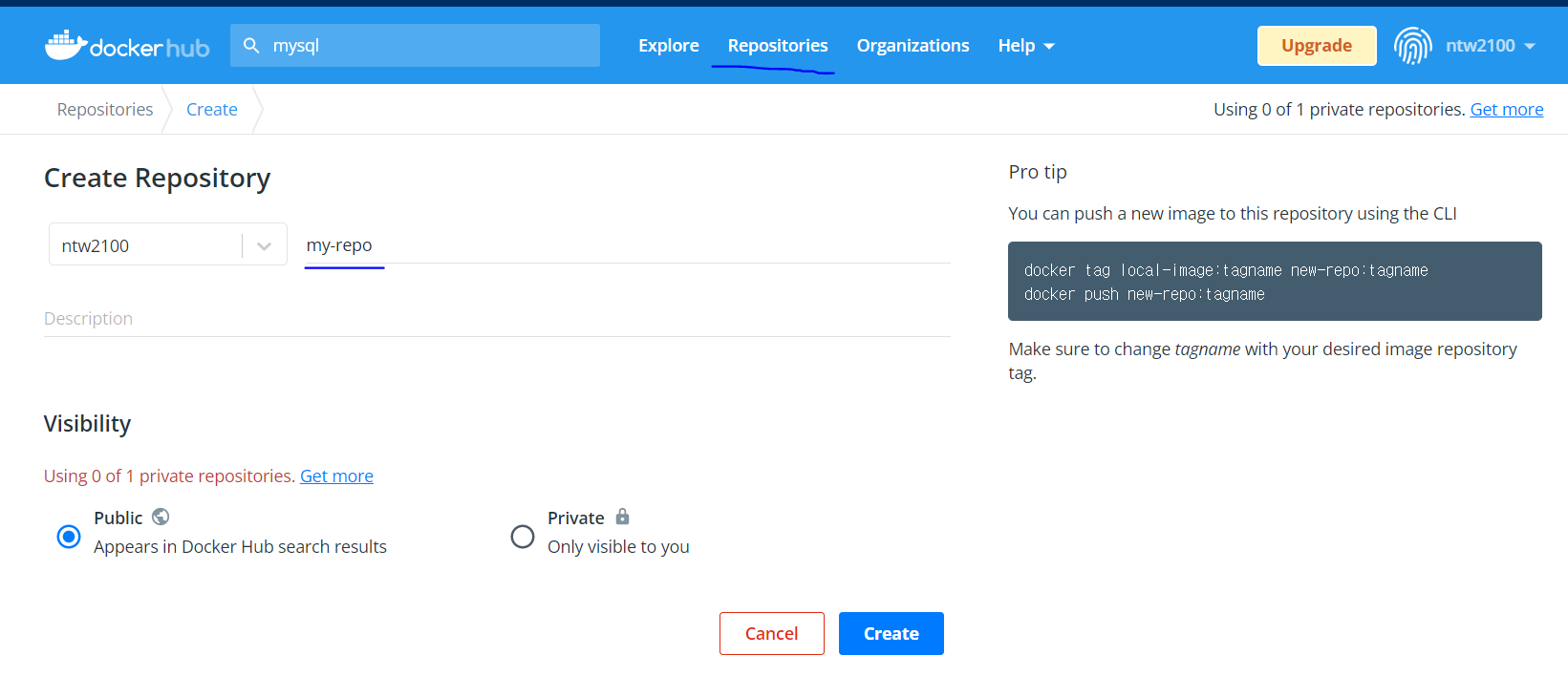 - 도커 허브 - 레파지토리 만들기