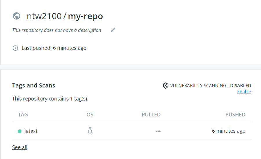 -> 입력 docker push ntw2100/my-repo:latest