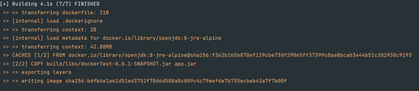 - 도커 빌드 : docker build -t my-springboot . (빌드 해서)