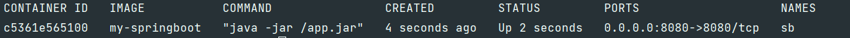 docker run --name sb -p 8080:8080 -d my-springboot