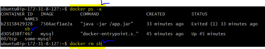 다시 docker ps -a 로 확인하면 sb 없는 것 확인 됨.