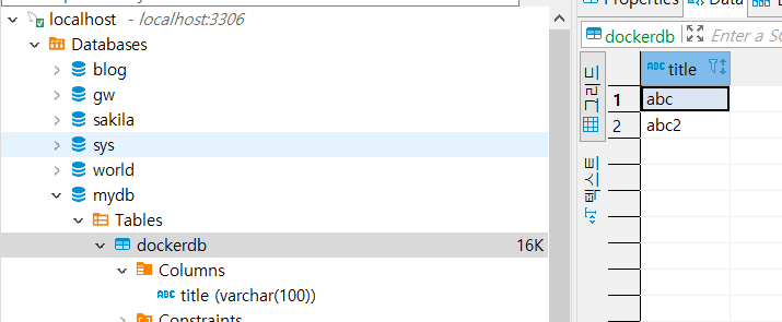 컨테이너 하나하나가 하나의 컴퓨터 이기 때문에 mysql은 다른 pc로 간주한다. 따라서 로컬환경에서 실행시 연결이 되지 않는게 정상.
