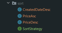 SortStrategy의 의존성 주입을 프론트에서 받아온 'searchStrategy' 값에 따라 다른 class를 주입해주는 정략 사용