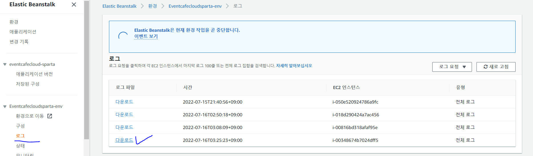 4. AWS에서 EB 로그 보는 방법