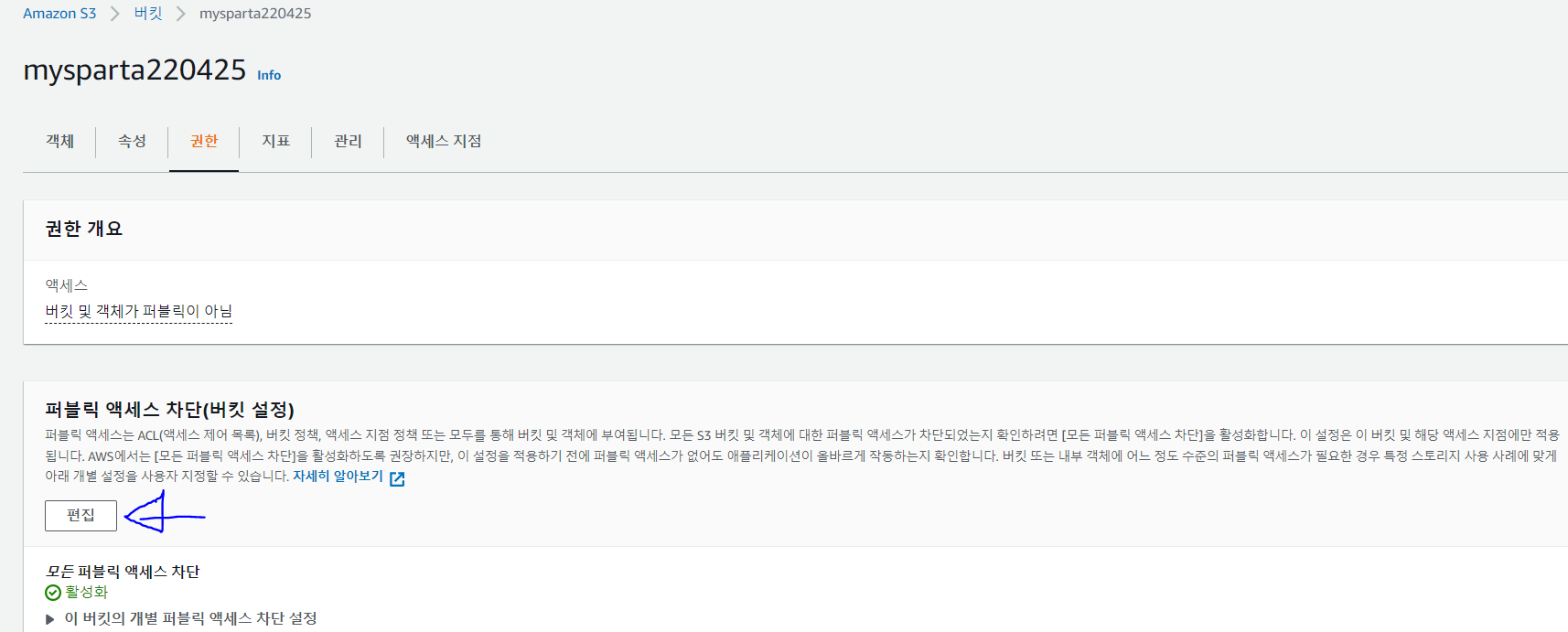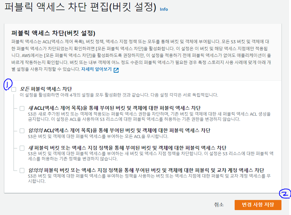 2. 퍼블릭 액세스 차단 편집(버킷 설정)