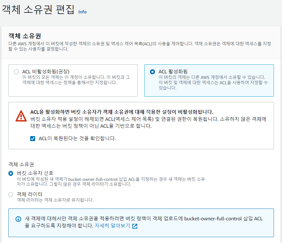 * 버킷의 권한 설정 (운영하는 서비스마다 사용법이 다름)