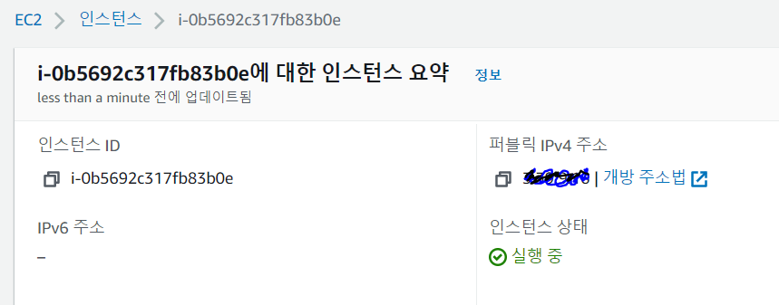 EC2 인스턴스 -> 퍼플릭 IPv4 주소 확인 (인스턴스가 새로 시작되면 새로운 ip가 할당됨)