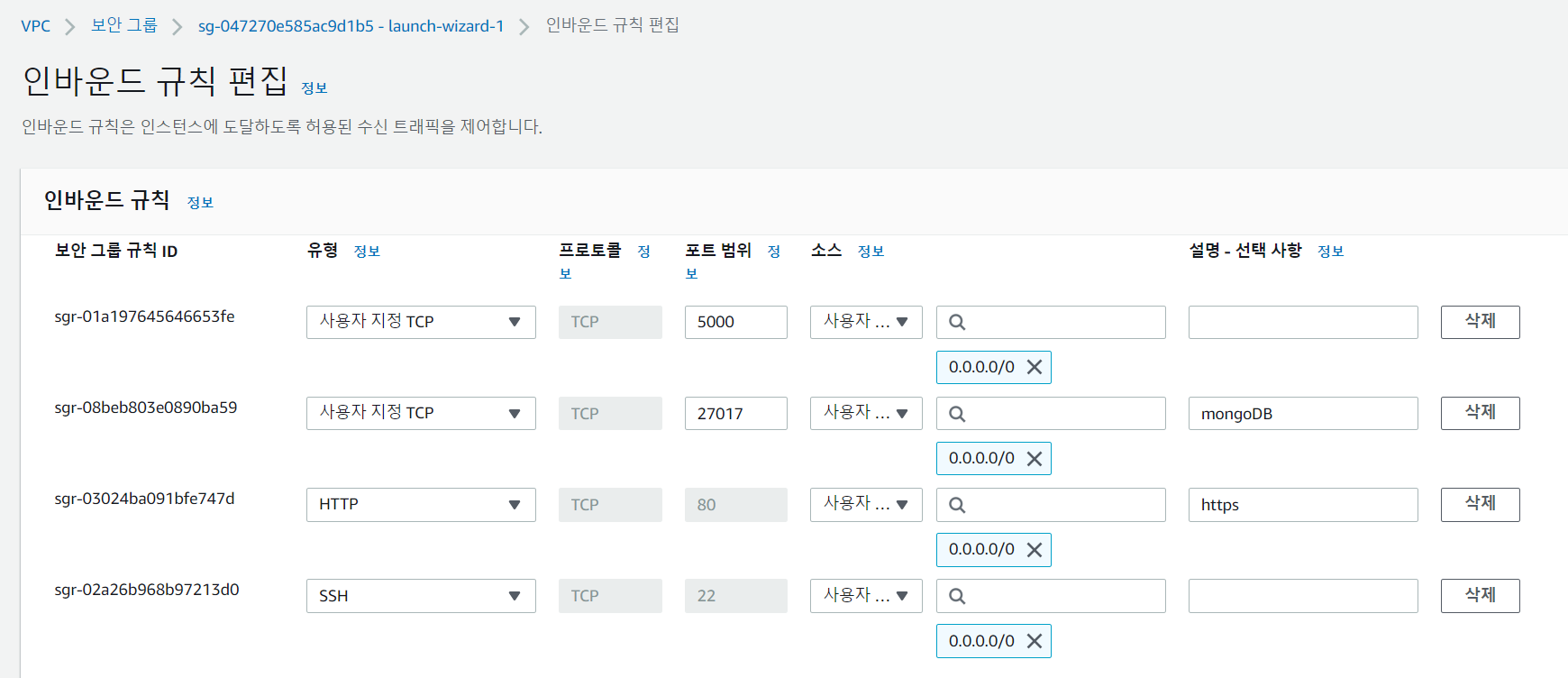 - 보안 그룹은 방화벽과 비슷한 역할을 합니다.