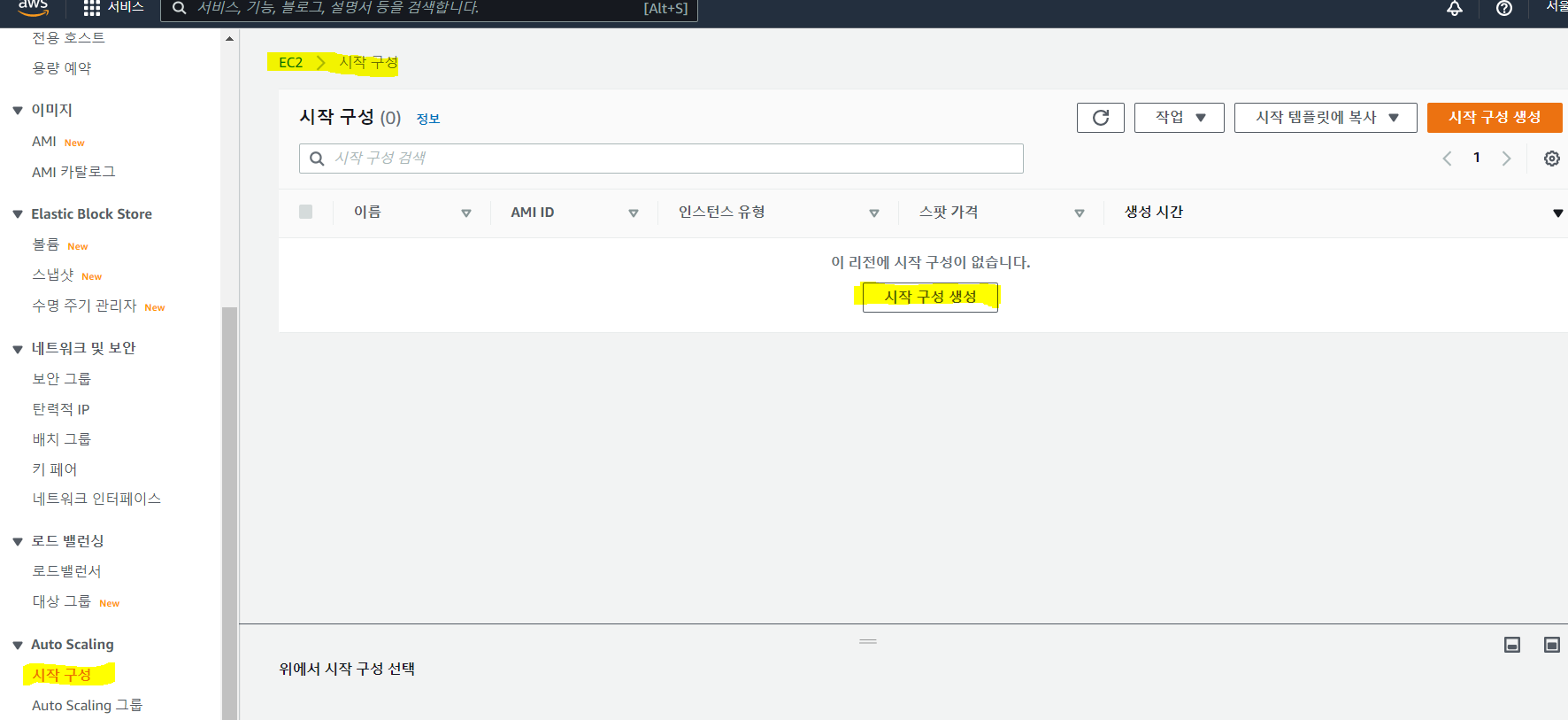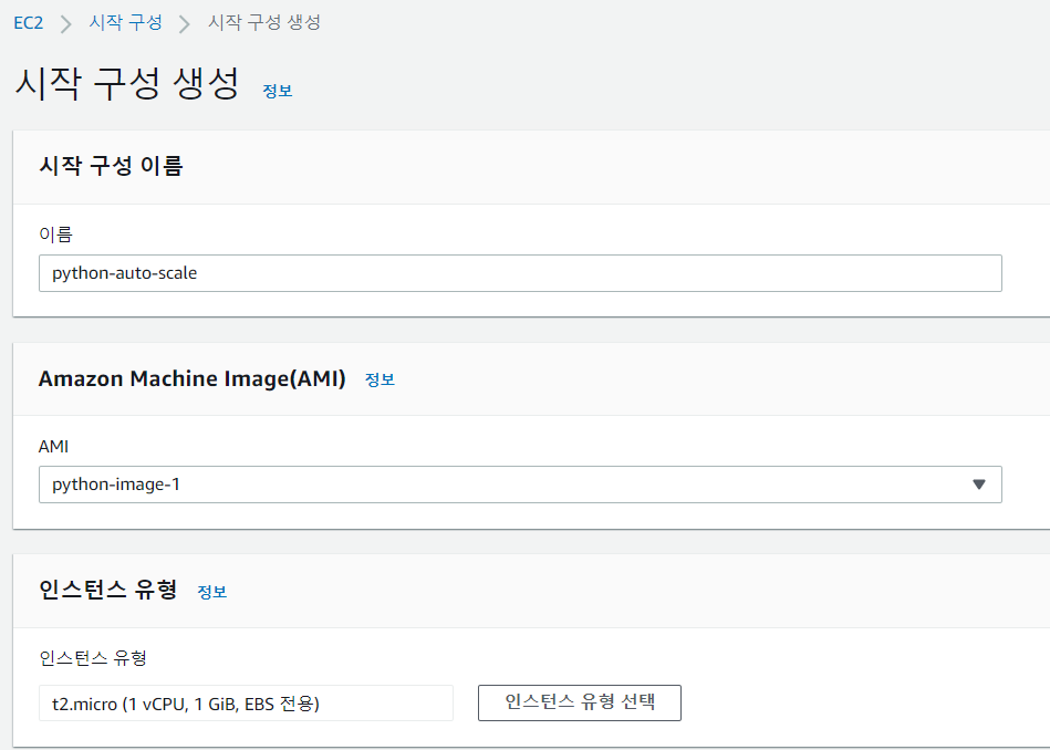 2. Auto Scaling 시작구성 만들기