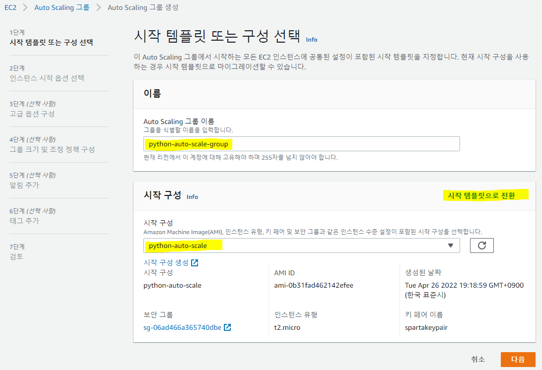 3. Auto Scaling 그룹 생성