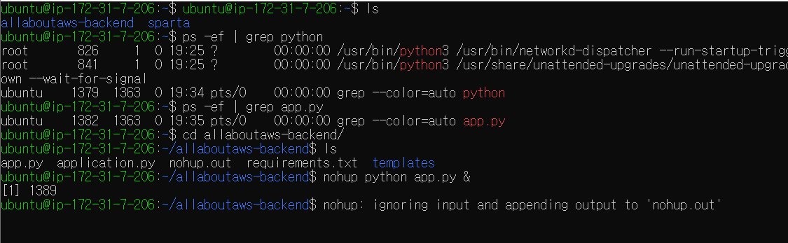 이때, 새로 생성된 인스턴스도 리눅스(ubuntu) - cmd 창으로 접속하여 app.py 파일 실행 시켜줘야함